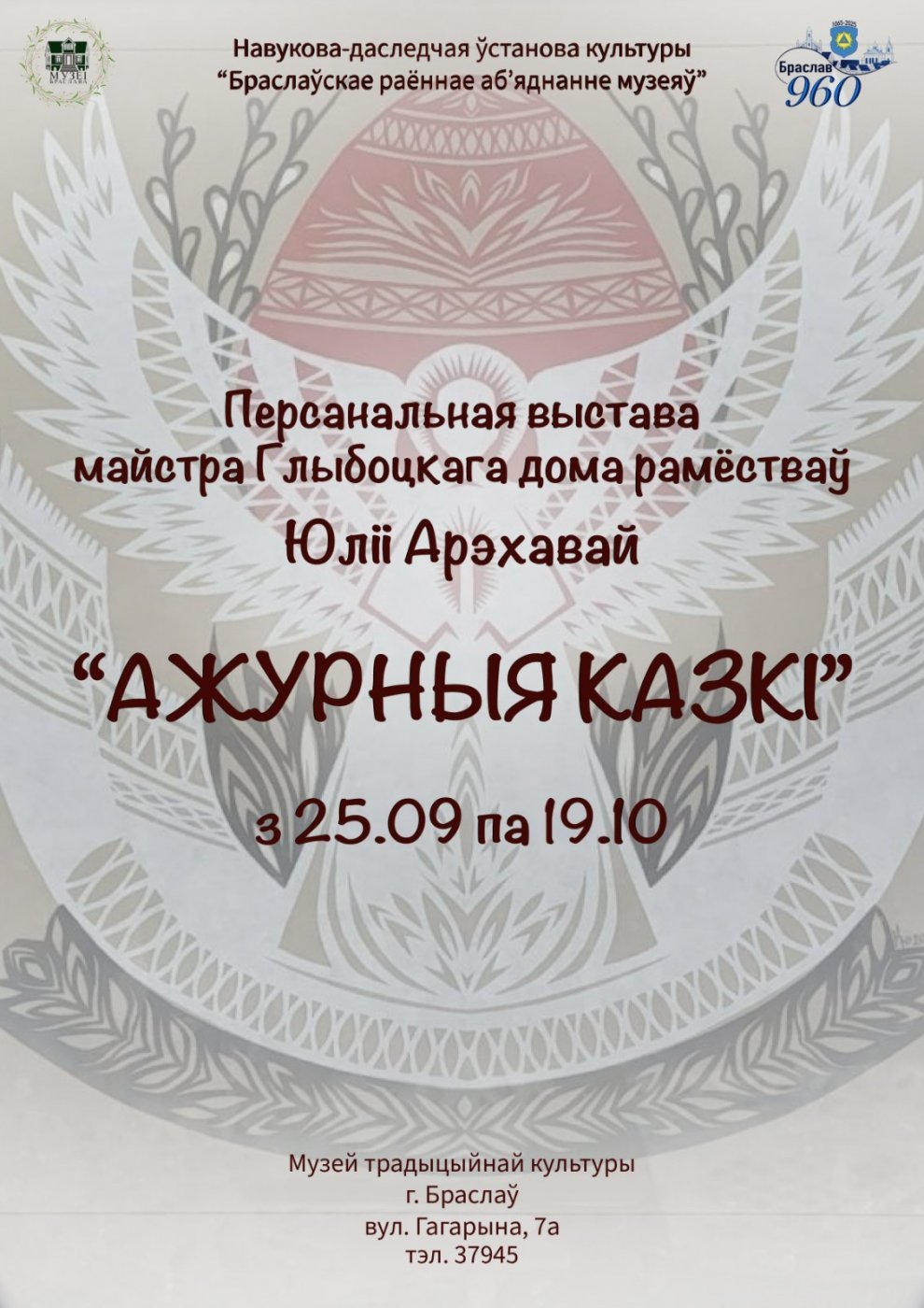 З 25 верасня ў выставачнай зале музея традыцыйнай культуры пачала працаваць выстава выцінанкі майстра з Глыбокага Юліі Арэхавай.